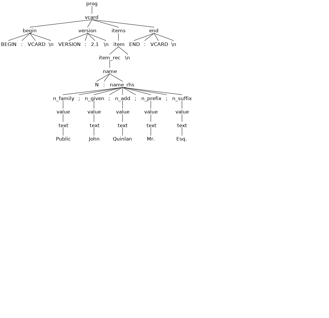 Wichtiger jedoch ist die Tatsache, dass schon in der Spezifikation der vCard (siehe Referenzen) eine „Grammatik“ (ansatzweise) definiert wird.